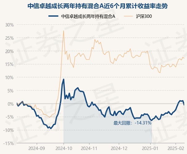 2月13日基金净值:中信卓越成长两年持有混合A最新净值1.7597,跌1.53%